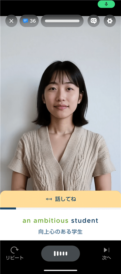 次に画面下部にフレーズが表示されるので、リピーティングします。