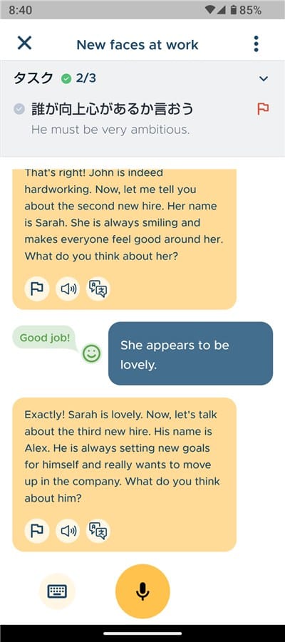 最後にAIと一緒に、覚えたフレーズを織り交ぜながらロールプレイングして終了です。