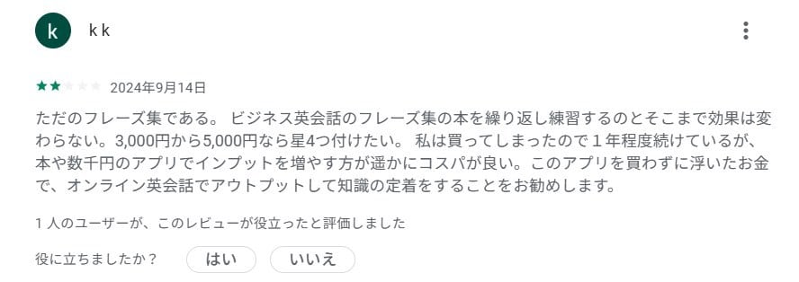 • 悪い口コミはフレーズ集との比較では低コスパに見えること