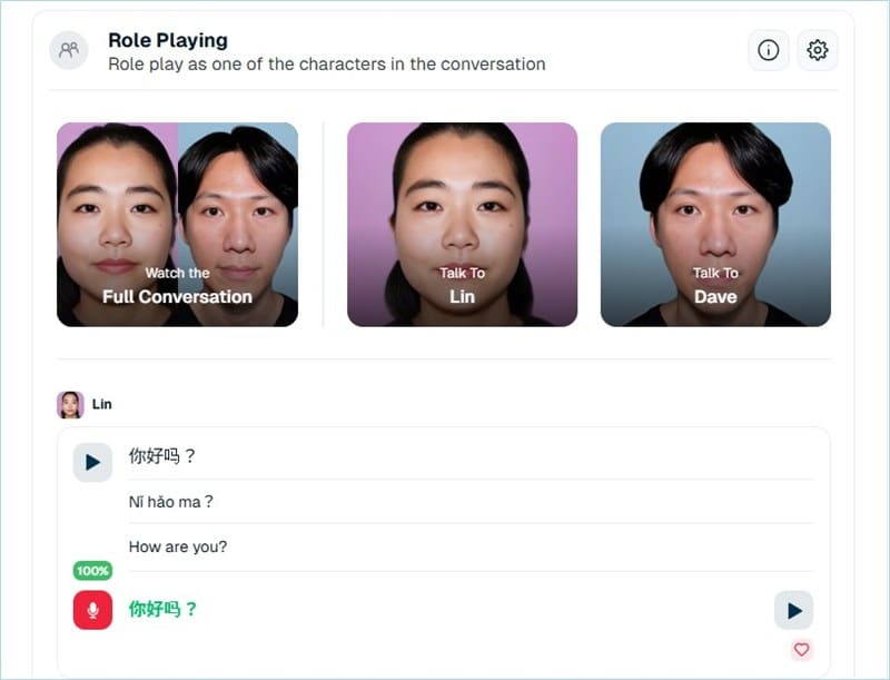 • ロールプレイングと音声認識で実践的な会話練習ができる
