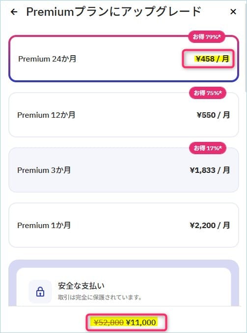 2025/12/26時点でホリデーセール実施中。2年払いが79%オフになっています。