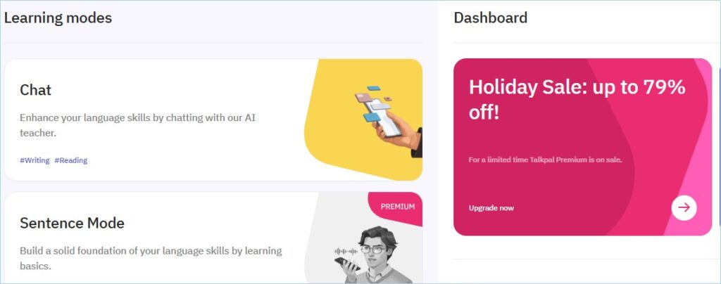 TalkpalはChat GPTを搭載した言語チューターです。特徴は次の通りです。